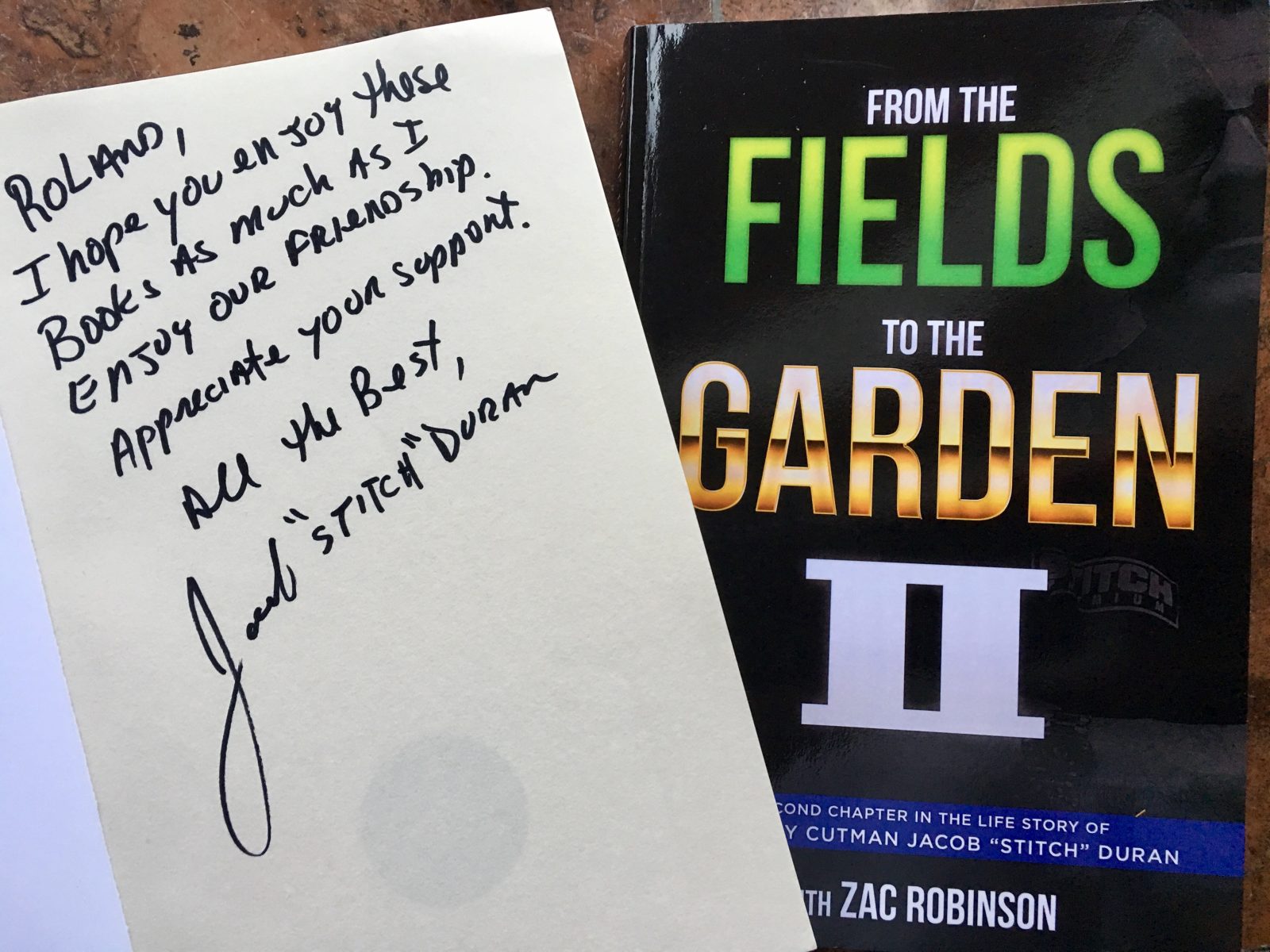 - Er hat mehrere Bücher über seine Karriere geschrieben, darunter From the Fields to the Garden: The Life of Stitch Duran, in dem er seine Lebensgeschichte erzählt.